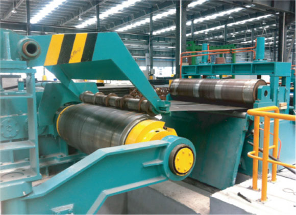 性能特點(diǎn): 該生產(chǎn)線是將一定寬的金屬卷料中厚板寬方向縱剪成多條所需寬度的帶材并進(jìn)行成品工件的卷取的成套設(shè)備。 由上料小車、開卷機(jī)、壓引-牽引-粗校、過渡臺、對中裝置、縱剪主機(jī)、活套、阻尼預(yù)分料、收卷機(jī)、卸料小車、液壓-氣動-電氣控制系統(tǒng)等組成。 通過更換與排列不同規(guī)格的刀片隔套,可縱剪成不同寬度成品工件。 可根據(jù)客戶的需要及生產(chǎn)線的工藝與配置實(shí)際需要,另外選配料頭剪、廢邊卷取裝置等裝置。 |