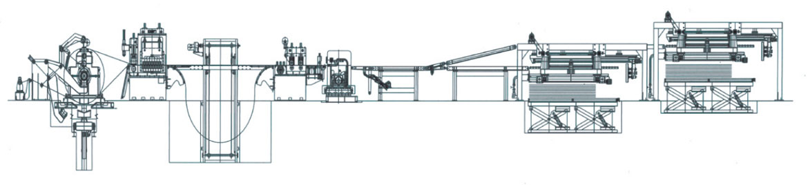 性能特點(diǎn): 該生產(chǎn)線是將較薄金屬卷板整平、剪切成塊狀板材的專用設(shè)備,實(shí)現(xiàn)工件連續(xù)運(yùn)行不停的工況下,完成高速精確定長(zhǎng)剪切,工件平整度及板型好,特別適合于剪切短板工件的批量生產(chǎn)。 通常由上料小車、開(kāi)卷機(jī)、引頭裝置、校平主機(jī)、活動(dòng)過(guò)橋、導(dǎo)向糾偏裝置、定尺機(jī)構(gòu)、覆膜裝置、飛剪主機(jī)、輸送工作臺(tái)、氣動(dòng)排料架、液壓升降垛料臺(tái)、運(yùn)料滾道臺(tái)及液壓、氣動(dòng)及電氣控制系統(tǒng)等組成。 主要液壓、氣動(dòng)、電控元件、定尺飛剪控制系統(tǒng)均選用國(guó)際一線品牌,操作界面友好,可靠性高。